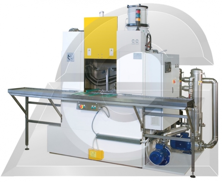 Equipamento de lavagem e desengorduramento que garante um ótimo grau de limpeza, mesmo sem utensílios específicos de lavagem, graças à rotação das peças imergidas numa solução aquosa (agua + detergente), agitada com jatos aspersores sob pressão.